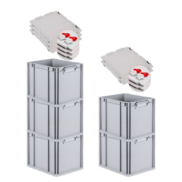 PROREGAL Spar Set 5x Eurobox Nextgen Economy Mit Scharnierdeckel & Roten Schiebeschnappverschlüssen Griffe Geschlossen HxBxT 32 x 30 x 40 cm 30 Liter