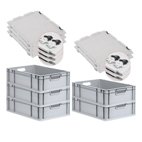 PROREGAL Spar Set 5x Eurobox Nextgen Economy Mit Scharnierdeckel & Schwarzen Schiebeschnappverschlüssen Griffe Offen HxBxT 17 x 40 x 60 cm 34 Liter