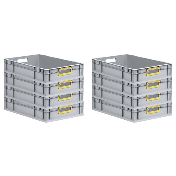 PROREGAL Spar Set 8x Eurobox Nextgen Color HxBxT 12 x 40 x 60 cm 23 Liter Griffe Gelb Offen Glatter Boden Eurobehälter Transportbox