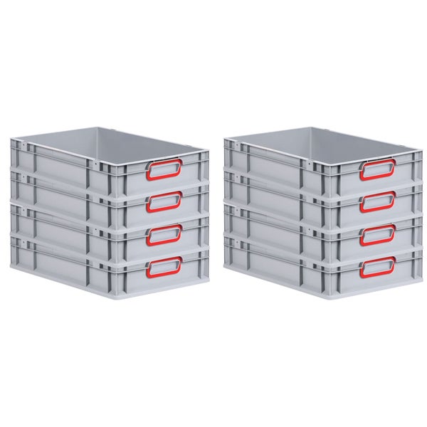 PROREGAL Spar Set 8x Eurobox Nextgen Color HxBxT 12 x 40 x 60 cm 23 Liter Griffe Rot Geschlossen Glatter Boden Eurobehälter Transportbox
