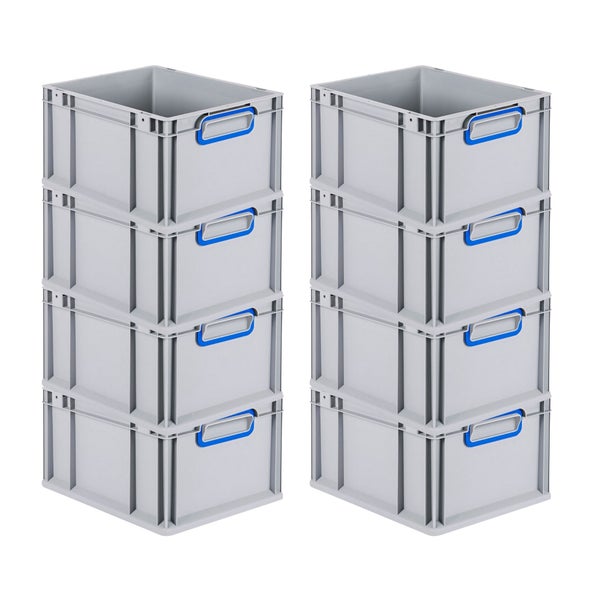 PROREGAL Spar Set 8x Eurobox Nextgen Color HxBxT 22 x 30 x 40 cm 20 Liter Griffe Blau Geschlossen Glatter Boden Eurobehälter Transportbox