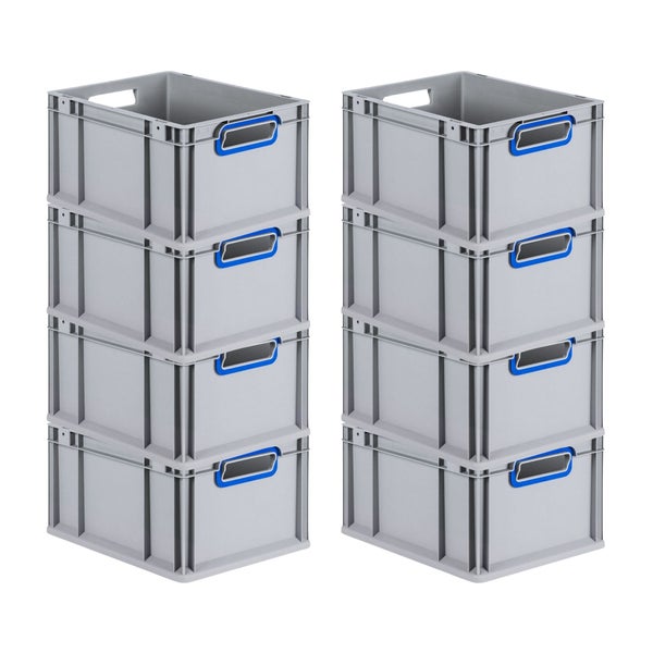 PROREGAL Spar Set 8x Eurobox Nextgen Color HxBxT 22 x 30 x 40 cm 20 Liter Griffe Blau Offen Glatter Boden Eurobehälter Transportbox