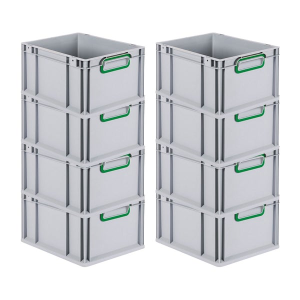 PROREGAL Spar Set 8x Eurobox Nextgen Color HxBxT 22 x 30 x 40 cm 20 Liter Griffe Grün Geschlossen Glatter Boden Eurobehälter Transportbox