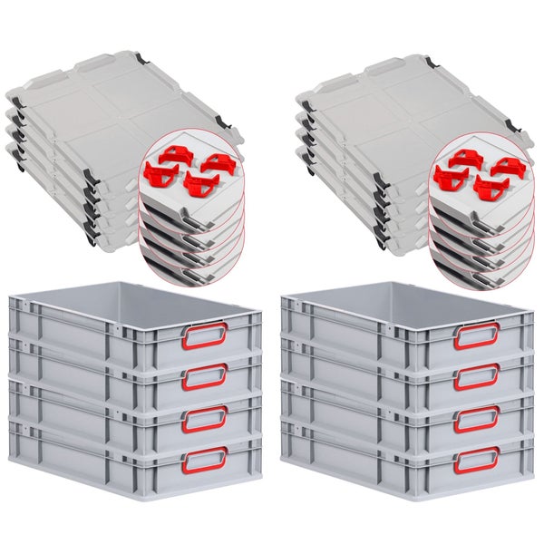 PROREGAL Spar Set 8x Eurobox Nextgen Color Mit Auflagedeckel & Schiebeschnappverschlüsse HxBxT 12 x 40 x 60 cm Griffe Rot Geschlossen Glatter Boden