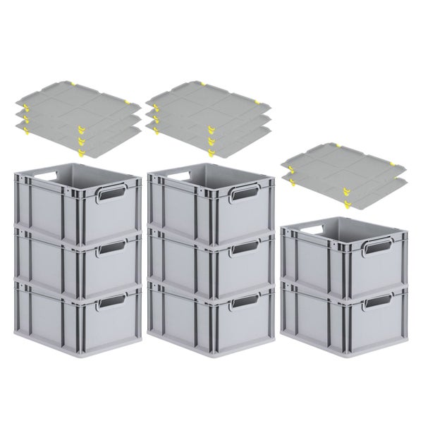 PROREGAL Spar Set 8x Eurobox Nextgen Economy Mit Auflagedeckel & 4x Schiebeschnappverschlüsse Gelb Griffe Offen HxBxT 22 x 30 x 40 cm 20 Liter