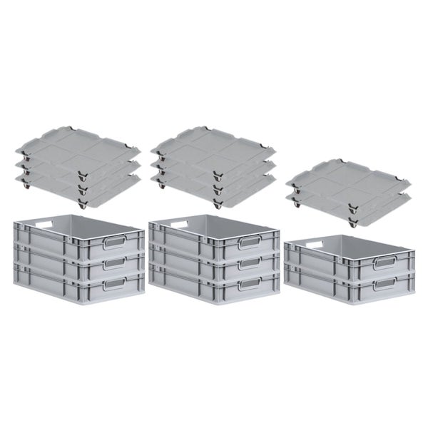 PROREGAL Spar Set 8x Eurobox Nextgen Economy Mit Auflagedeckel & 4x Schiebeschnappverschlüsse Schwarz Griffe Offen HxBxT 12 x 40 x 60 cm 23 Liter
