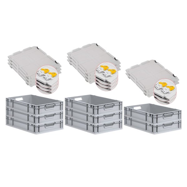 PROREGAL Spar Set 8x Eurobox Nextgen Economy Mit Scharnierdeckel & Gelben Schiebeschnappverschlüssen Griffe Offen HxBxT 12 x 40 x 60 cm 23 Liter