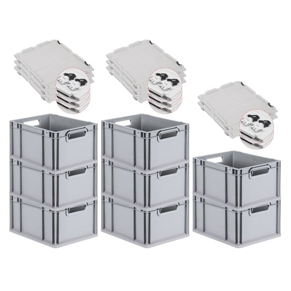 PROREGAL Spar Set 8x Eurobox Nextgen Economy Mit Scharnierdeckel & Schwarzen Schiebeschnappverschlüssen Griffe Offen HxBxT 22 x 30 x 40 cm 20 Liter