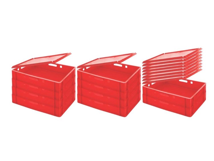 PROREGAL SparSet 10 x Eurobehälter Fleischerkasten E1 Mit Auflagedeckel HxBxT 12,5 x 40 x 60 cm 25 Liter Rot Fleischerkiste Fleischkiste