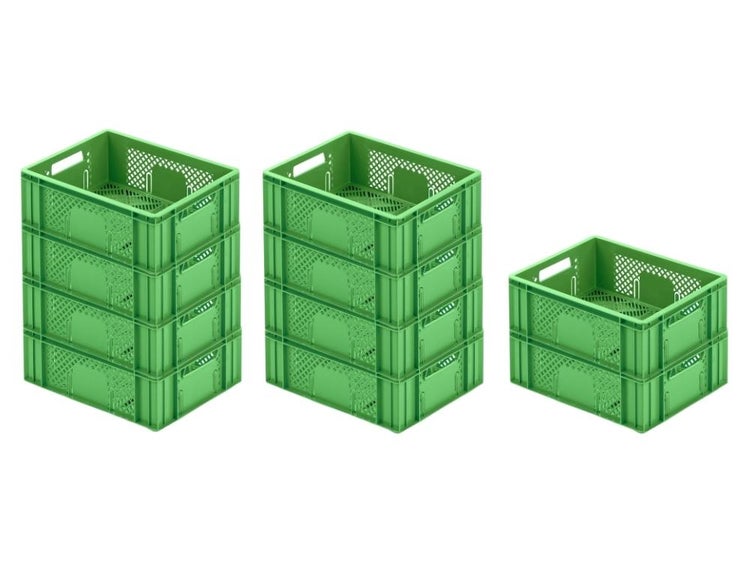 PROREGAL SparSet 10 x Eurobehälter Obst- und Gemüsekasten HxBxT 14,2 x 30 x 40 cm 13 Liter Grün Obst-Gemüsekiste Obstkorb Transportbox