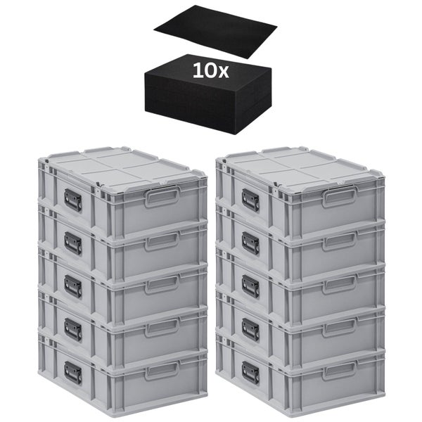 PROREGAL SparSet 10 x Eurobox NextGen Portable Mit Rasterschaumstoff und Schaumstoffeinlage HxBxT 18,5 x 40 x 60 cm 34 Liter Eurobehälter Transportbox