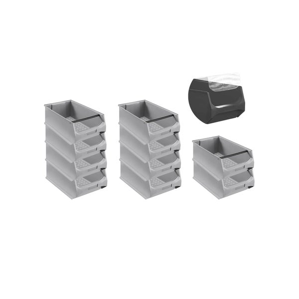 PROREGAL SparSet 10 x Graue Sichtlagerbox 5.1 Mit Griffstange und Abdeckung HxBxT 20 x 30 x 50 cm 21,8 Liter Sichtlagerbehälter Sichtlagerkasten