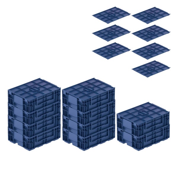 PROREGAL SparSet 10 x VDA KLT Kleinladungsträger Mit Verbundboden und Auflagedeckel HxBxT 14,7 x 30 x 40 cm 10 Liter KLT Transportbox