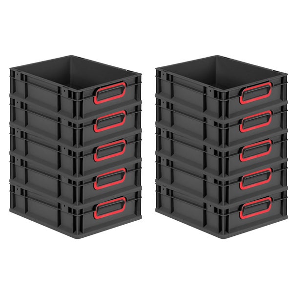 PROREGAL SparSet 10x Eurobox NextGen Color, HxBxT 12x30x40cm, 11 Liter, Griffe rot geschlossen, Schwarz, Eurobehälter, Transportbox, Transportbehälter, Stapelbehälter