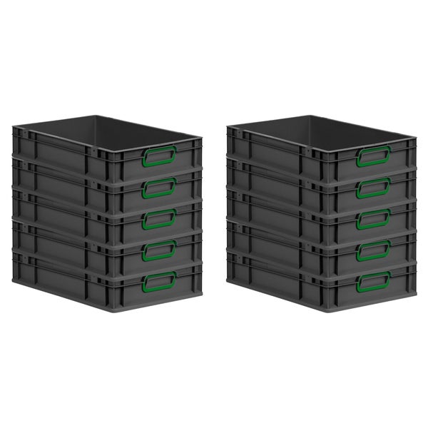 PROREGAL SparSet 10x Eurobox NextGen Color, HxBxT 12x40x60cm, 23 Liter, Griffe grün geschlossen, Schwarz, Eurobehälter, Transportbox, Transportbehälter, Stapelbehälter