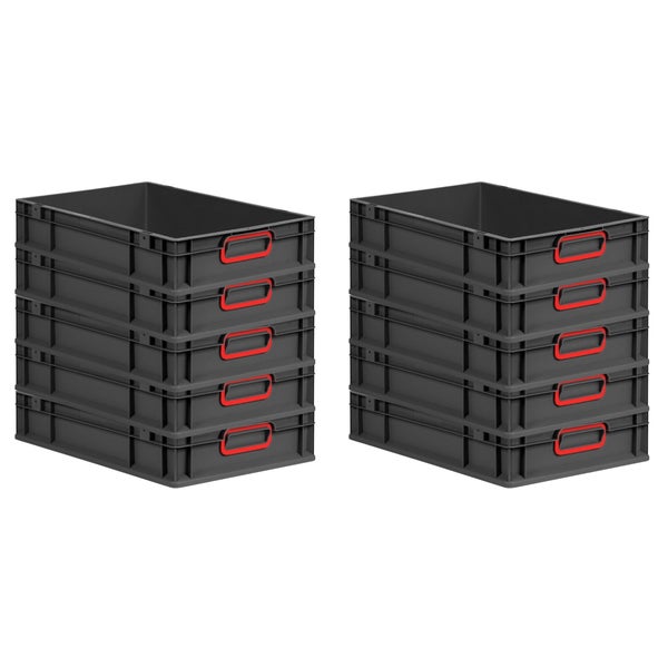 PROREGAL SparSet 10x Eurobox NextGen Color, HxBxT 12x40x60cm, 23 Liter, Griffe rot geschlossen, Schwarz, Eurobehälter, Transportbox, Transportbehälter, Stapelbehälter