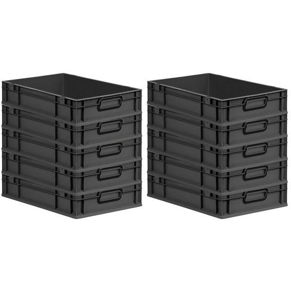 PROREGAL SparSet 10x Eurobox NextGen Color, HxBxT 12x40x60cm, 23 Liter, Griffe schwarz geschlossen, Schwarz, Eurobehälter, Transportbox, Transportbehälter, Stapelbehälter