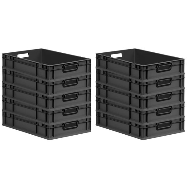 PROREGAL SparSet 10x Eurobox NextGen Color, HxBxT 12x40x60cm, 23 Liter, Griffe schwarz offen, Schwarz, Eurobehälter, Transportbox, Transportbehälter, Stapelbehälter