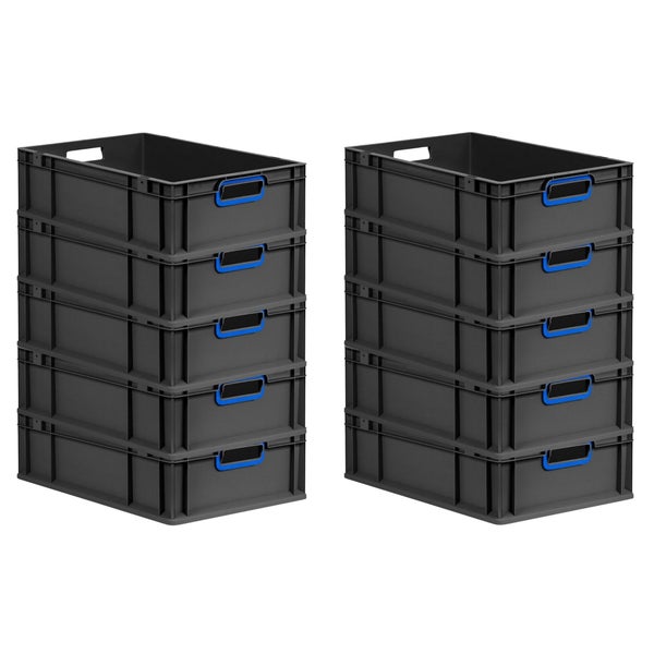 PROREGAL SparSet 10x Eurobox NextGen Color, HxBxT 17x40x60cm, 34 Liter, Griffe blau offen, Schwarz, Eurobehälter, Transportbox, Transportbehälter, Stapelbehälter