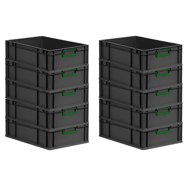 PROREGAL SparSet 10x Eurobox NextGen Color, HxBxT 17x40x60cm, 34 Liter, Griffe grün geschlossen, Schwarz, Eurobehälter, Transportbox, Transportbehälter, Stapelbehälter