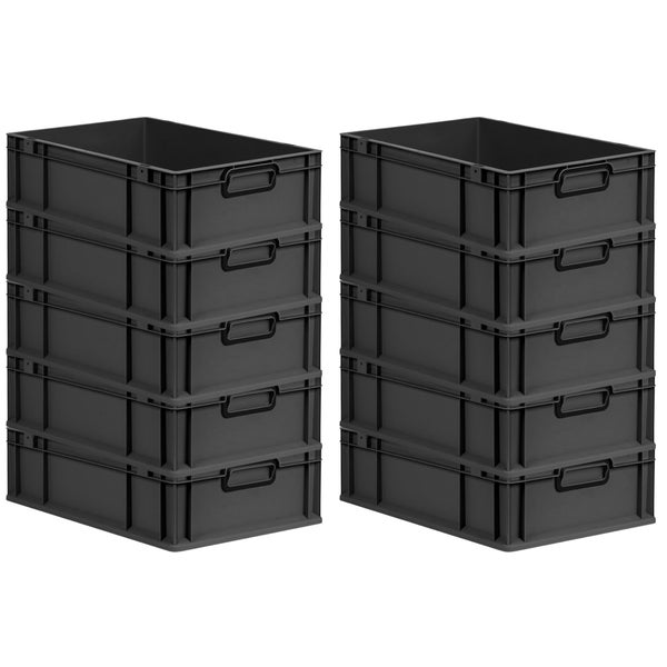 PROREGAL SparSet 10x Eurobox NextGen Color, HxBxT 17x40x60cm, 34 Liter, Griffe schwarz geschlossen, Schwarz, Eurobehälter, Transportbox, Transportbehälter, Stapelbehälter