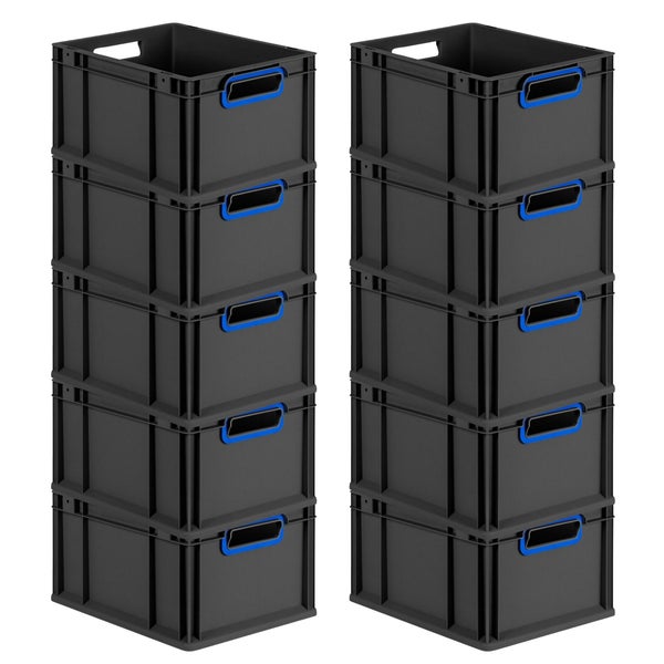 PROREGAL SparSet 10x Eurobox NextGen Color, HxBxT 22x30x40cm, 20 Liter, Griffe blau offen, Schwarz, Eurobehälter, Transportbox, Transportbehälter, Stapelbehälter