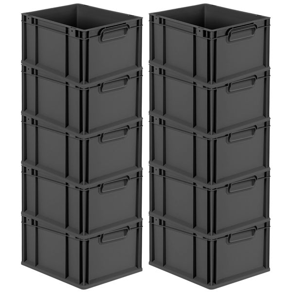 PROREGAL SparSet 10x Eurobox NextGen Color, HxBxT 22x30x40cm, 20 Liter, Griffe schwarz geschlossen, Schwarz, Eurobehälter, Transportbox, Transportbehälter, Stapelbehälter