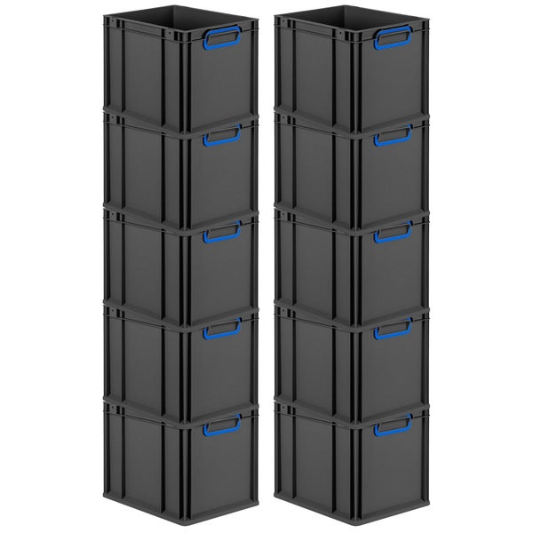 PROREGAL SparSet 10x Eurobox NextGen Color, HxBxT 32x30x40cm, 30 Liter, Griffe blau geschlossen, Schwarz, Eurobehälter, Transportbox, Transportbehälter, Stapelbehälter