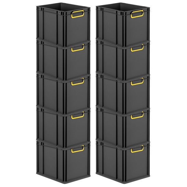 PROREGAL SparSet 10x Eurobox NextGen Color, HxBxT 32x30x40cm, 30 Liter, Griffe gelb geschlossen, Schwarz, Eurobehälter, Transportbox, Transportbehälter, Stapelbehälter
