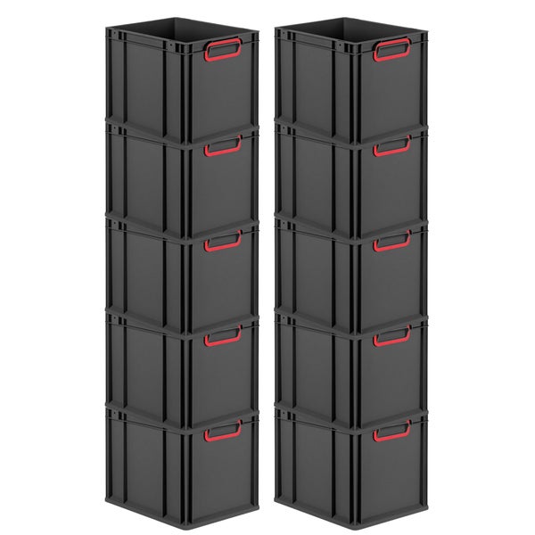 PROREGAL SparSet 10x Eurobox NextGen Color, HxBxT 32x30x40cm, 30 Liter, Griffe rot geschlossen, Schwarz, Eurobehälter, Transportbox, Transportbehälter, Stapelbehälter