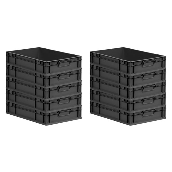 PROREGAL SparSet 10x Eurobox NextGen Grip, HxBxT 12x40x60cm, 23 Liter, Griffe geschlossen, Schwarz, Eurobehälter, Transportbox, Transportbehälter, Stapelbehälter
