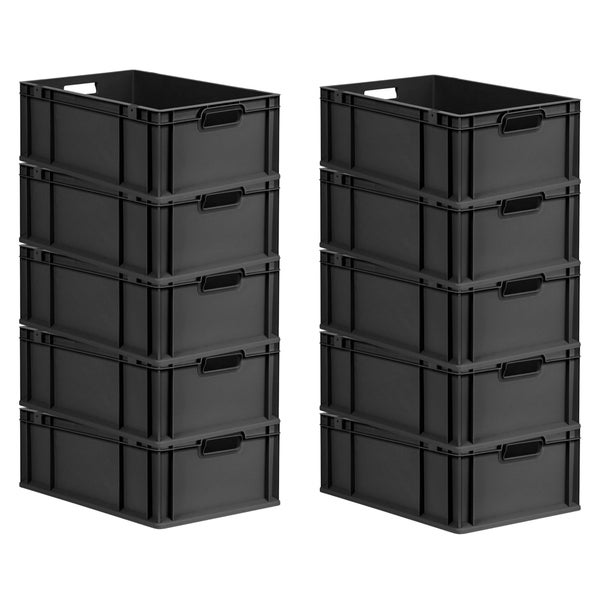PROREGAL SparSet 10x Eurobox NextGen Grip, HxBxT 22x40x60cm, 44 Liter, Griffe offen, Verstärkter Boden, Schwarz, Eurobehälter, Transportbox, Transportbehälter, Stapelbehälter