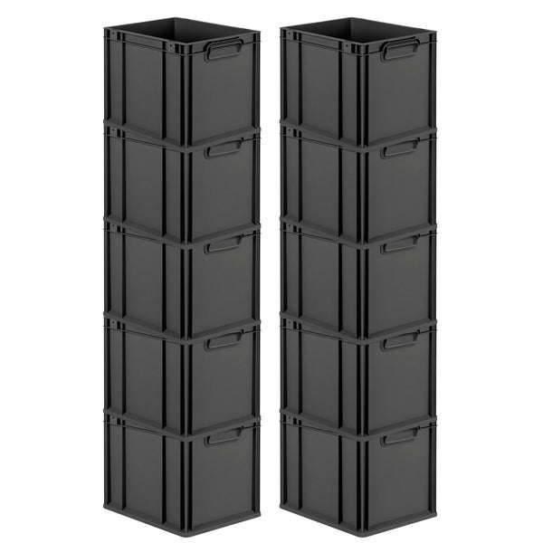 PROREGAL SparSet 10x Eurobox NextGen Grip, HxBxT 32x30x40cm, 30 Liter, Griffe geschlossen, Schwarz, Eurobehälter, Transportbox, Transportbehälter, Stapelbehälter