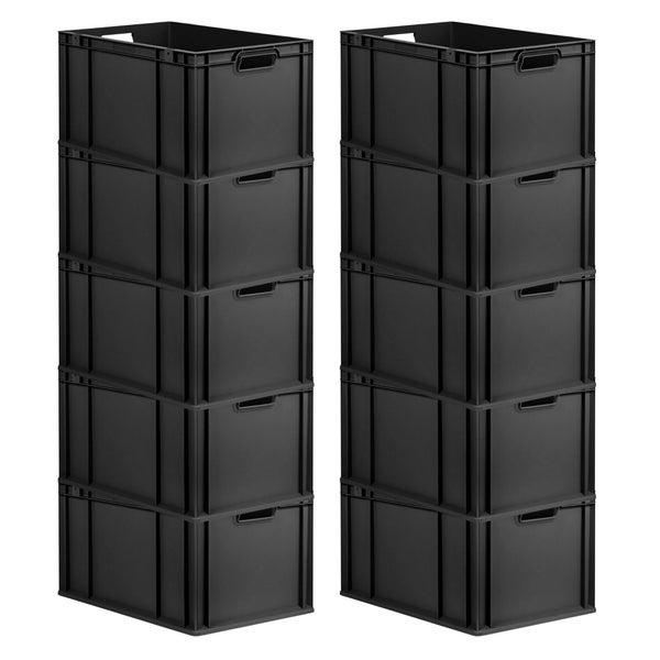 PROREGAL SparSet 10x Eurobox NextGen Grip, HxBxT 32x40x60cm, 65 Liter, Griffe offen, Verstärkter Boden, Schwarz, Eurobehälter, Transportbox, Transportbehälter, Stapelbehälter