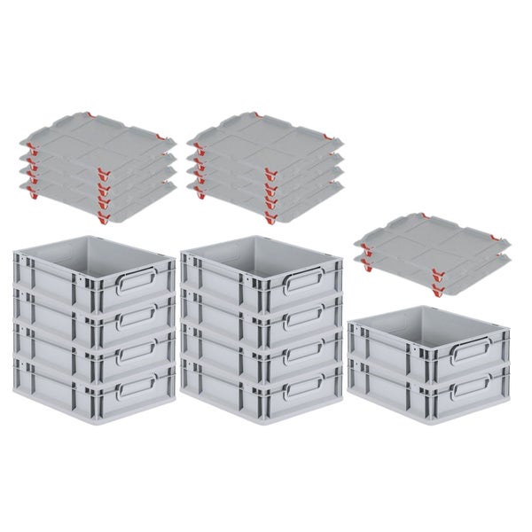 PROREGAL SparSet 10x Eurobox NextGen Grip mit Auflagedeckel mit 4 Roten Schiebeschnappverschlüssen HxBxT 12 x 30 x 40 cm 11 Liter