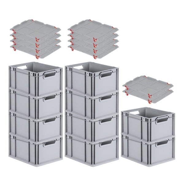 PROREGAL SparSet 10x Eurobox NextGen Grip mit Auflagedeckel mit 4 Roten Schiebeschnappverschlüssen HxBxT 22 x 30 x 40 cm 20 Liter Griffe