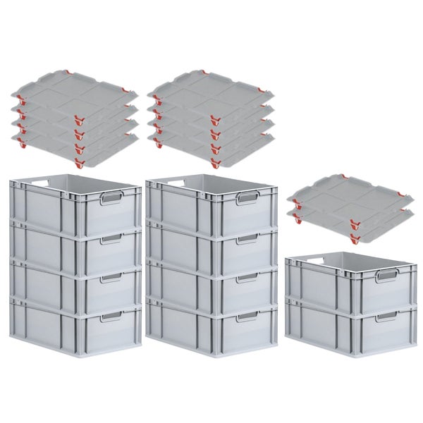 PROREGAL SparSet 10x Eurobox NextGen Grip mit Auflagedeckel mit 4 Roten Schiebeschnappverschlüssen HxBxT 22 x 40 x 60 cm 44 Liter
