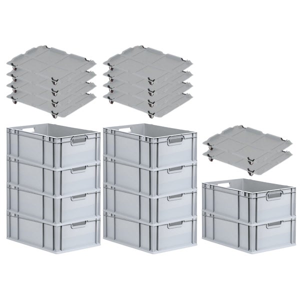 PROREGAL SparSet 10x Eurobox NextGen Grip mit Auflagedeckel mit 4 Schwarzen Schiebeschnappverschlüssen HxBxT 22 x 40 x 60 cm 44 Liter