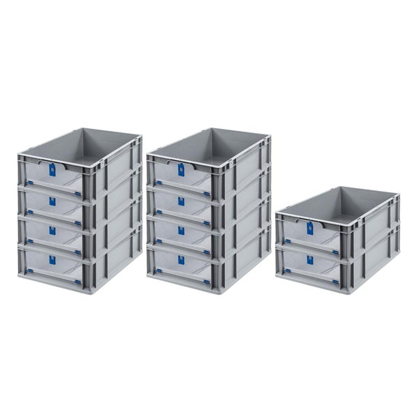 PROREGAL SparSet 10x Eurobox NextGen Insight Cover HxBxT 17 x 40 x 60 34 Liter Niedrig/Blau Eurobehälter Transportbox