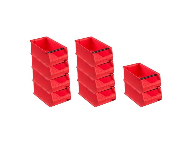 PROREGAL SparSet 10x Rote Sichtlagerbox 4.1 mit Griffstange HxBxT 15 x 20 x 35 cm 7,2 Liter Sichtlagerbehälter
