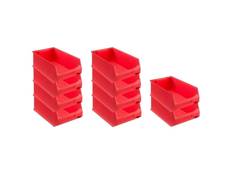 PROREGAL SparSet 10x Rote Sichtlagerbox 5.0 HxBxT 20 x 30 x 50 cm 21,8 Liter Sichtlagerbehälter