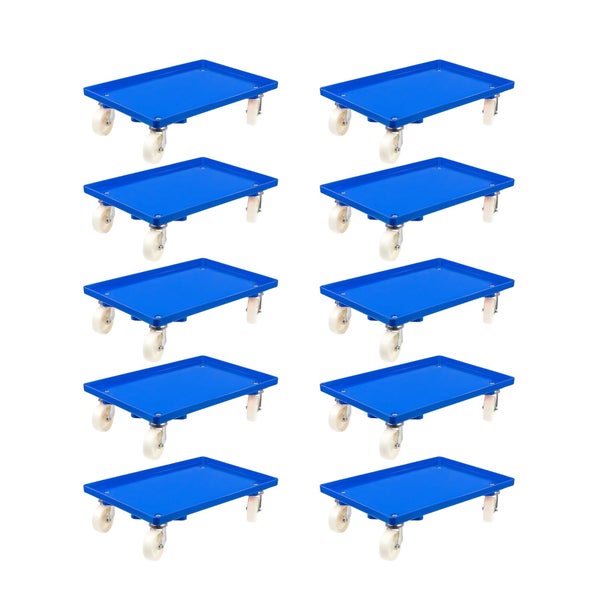 PROREGAL SparSet 10x Transportroller für Euroboxen 60 x 40 cm mit Kunststoffräder Blau Geschlossenes Deck 2 Lenkrollen und 2 Bockrollen 300 kg