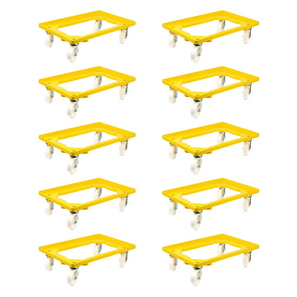 PROREGAL SparSet 10x Transportroller für Euroboxen 60 x 40 cm mit Kunststoffräder Gelb Offenes Deck 2 Lenkrollen und 2 Bockrollen Traglast 300 kg