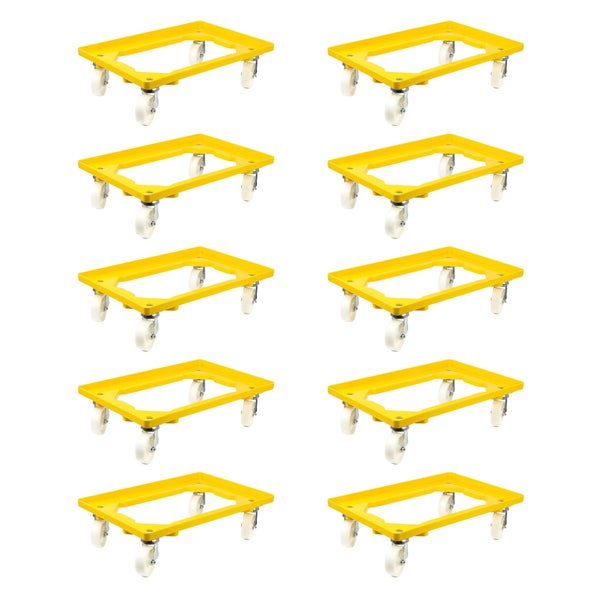 PROREGAL SparSet 10x Transportroller für Euroboxen 60 x 40 cm mit Kunststoffräder Gelb Offenes Deck 2 Lenkrollen und 2 Bremsrollen Traglast 300 kg