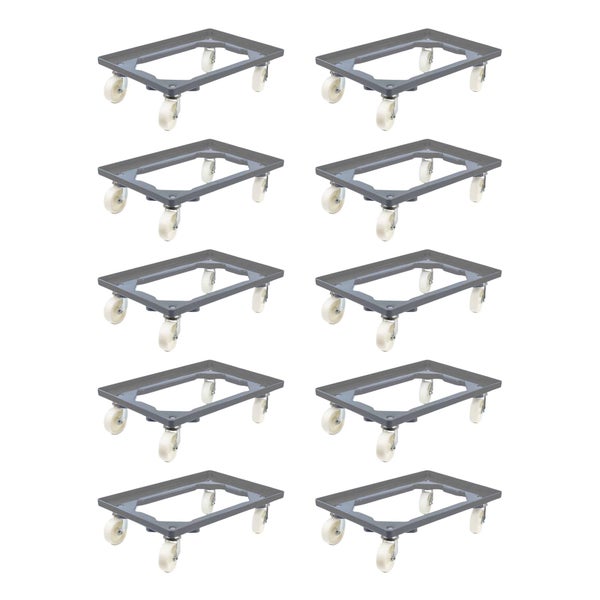 PROREGAL SparSet 10x Transportroller für Euroboxen 60 x 40 cm mit Kunststoffräder Grau Offenes Deck 2 Lenkrollen und 2 Bremsrollen Traglast 300 kg