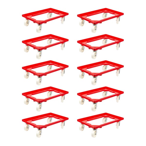 PROREGAL SparSet 10x Transportroller für Euroboxen 60 x 40 cm mit Kunststoffräder Rot Offenes Deck 4 Lenkrollen Traglast 300 kg