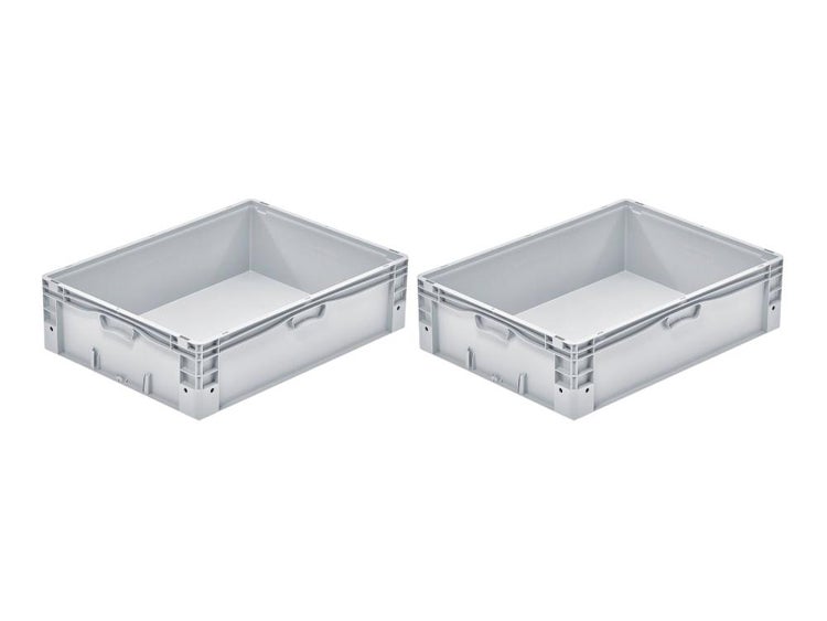 PROREGAL SparSet 2x Euro-Norm Großbehälter HxBxT 22 x 60 x 80 cm 91 Liter Glatter Boden Grau Eurobehälter Transportbox
