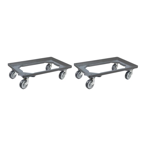 PROREGAL SparSet 2x Transportroller für Euroboxen 60 x 40 cm mit Gummiräder Grau Offenes Deck 2 Lenkrollen und 2 Bremsrollen Traglast 300 kg