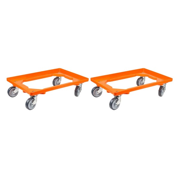 PROREGAL SparSet 2x Transportroller für Euroboxen 60 x 40 cm mit Gummiräder Orange Offenes Deck 4 Lenkrollen Traglast 300 kg