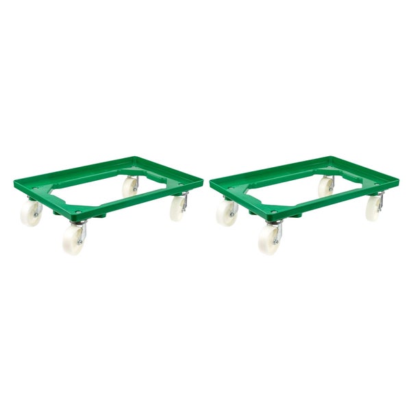PROREGAL SparSet 2x Transportroller für Euroboxen 60 x 40 cm mit Kunststoffräder Grün Offenes Deck 2 Lenkrollen und 2 Bremsrollen Traglast 300 kg